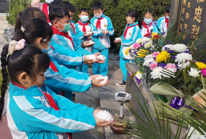 周铺小学三年级全体师生排着整齐的队伍来到365bet手机娱乐场_365彩票app下载苹果版_正规beat365旧版绿色团山烈士公墓,对保卫祖国而献出青春热血的赵怡忠烈士表示沉痛的哀悼。