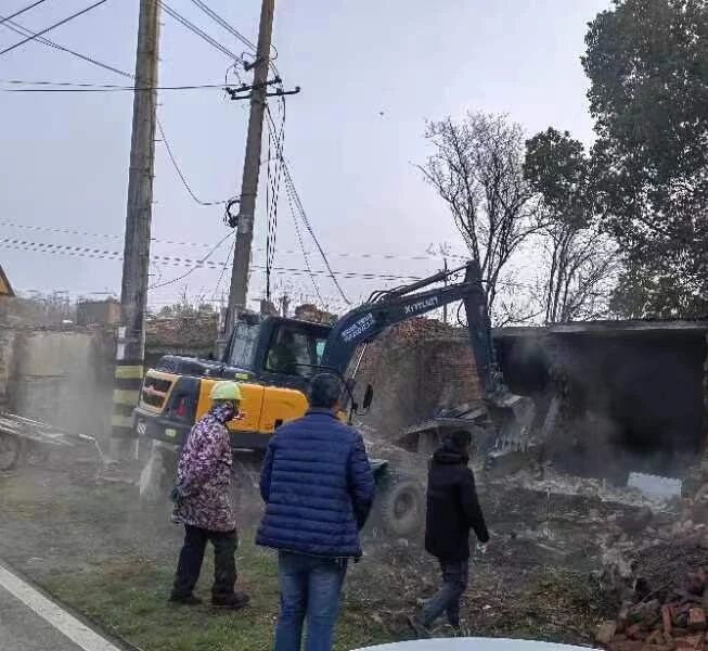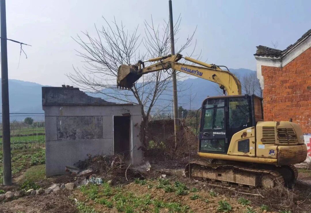 (五)董胜村:董胜村组织党员群众近10人、投入钩机1台,对陈泉线董胜村路段辖区内历史遗留的乱建问题开展专项整治,拆除废弃变电房和牛棚房2处,整改对比如下: