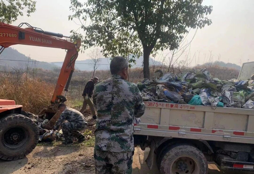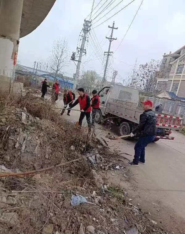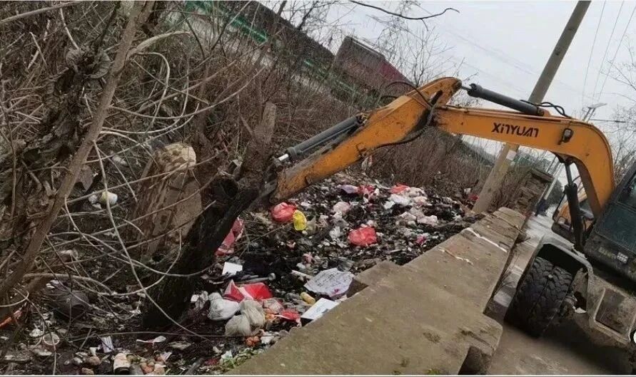 (七)王边村:王边村组织党员群众近20人,挖机2台、运输车3台,对从华宇新村志汉池新村道路、幸福里小区后山广告牌下、左磨公路沿线、村部至吴脑村交界处道路、佳鑫砖厂旁、马园段路段等区域白色垃圾陈年垃圾进行了清理,整改进度图片如下: