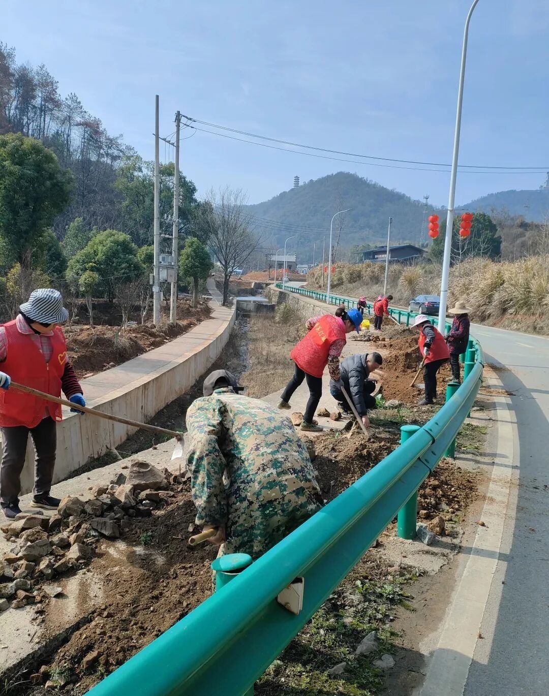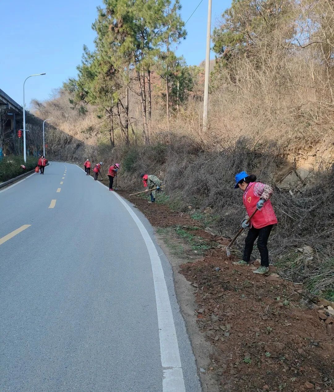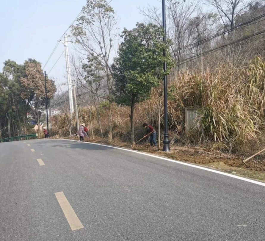 (八)岳石洪村:岳石洪村组织20名党员干部和志愿者对陈泉路岳石洪村路段道路两旁进行清理,并开展种花活动,共平整6公里道路,防火带2公里,卫生死角3处,整改进度图片如下: